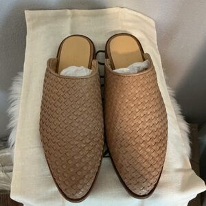 Step into style with these chic woven tan mules. Perfect for any occasion, these shoes offer both comfort and elegance.