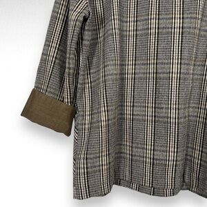 Stylish plaid women's jacket featuring elegant brown accents. Perfect for a chic and sophisticated look.