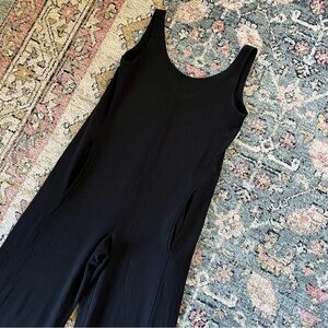 ‘Simple and streamlined. A cropped jumpsuit with a scoop neck and wide leg. In our best-loved terry--fleece lined with the natural stretch of a knit. So soft, we call it "the Hug."’