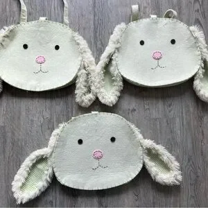 Featuring a cute bunny face and soft, fluffy ears, it's both fun and functional. Gently used pottery barn Bunny Chair backs. Set of 3 bunny chair backs with pockets. Have been washed and laid flat to dry. One with pink marker and another with stain on back.