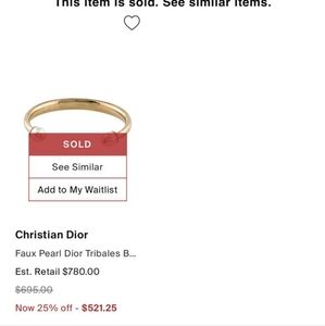 Christian Dior Logo Pearl Tribales Bracelet With Box