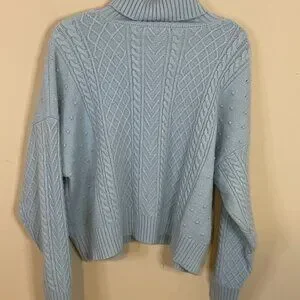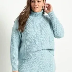 Eloquii Aqua Blue Turtle Neck Cable Knit Sweater 18/20