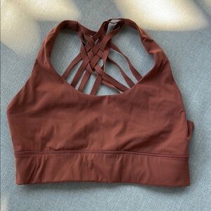 Stylish sports bras with crisscross back design. Available in green and brown.