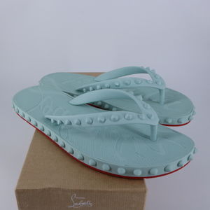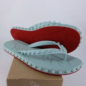 Christian Louboutin 40 Super Loubi Flip Donna Iceburg Blue Spike Flip Flops E849