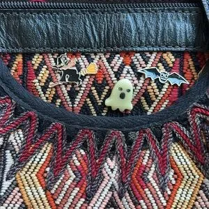 I carried this bag during the month of October as my halloween bag (hence the halloween pins- which can be included or i can remove them. ghost glows in the dark!)