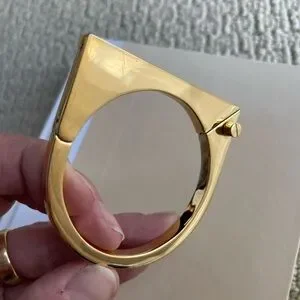 This stunning gold bracelet by Miansai features a sleek and modern design, characterized by its smooth and polished finish. The minimalist geometric structure adds a touch of sophistication, making it a perfect statement piece for any occasion.
