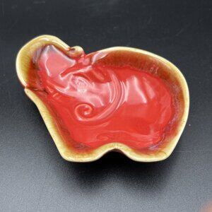 Red Elephant Ceramic Art Pottery Ring Holder Trinket Dish Jewelry Bowl Trunk Up