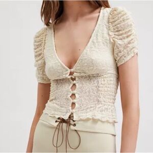 NWOT UO Kimchi Blue Hollie Puff Sleeve Ruffled Blouse