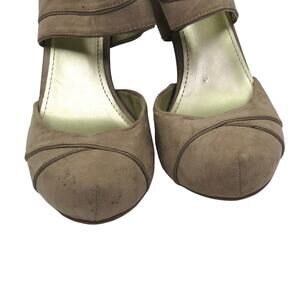 Fergalicious Taupe Tan Suede Ankle Wrap Heels Size 8