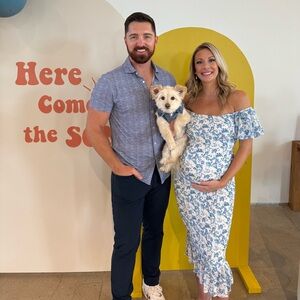 In perfect condition, wore once for my baby shower! The stretch is super giving and fit me after having my baby as well.