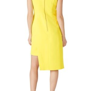 Yellow crepe (95% Polyester, 5% Spandex). Sheath. Sleeveless. Crew neckline. Center back zipper closure. Fully lined. 37" from shoulder to hemline at shortest point. 44.5" from shoulder to hemline at longest point. Imported.