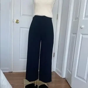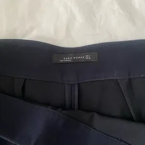 Zara's navy wide-leg pants, high-waisted pants. Side zipper. Waist 30”. Length 36.5”.