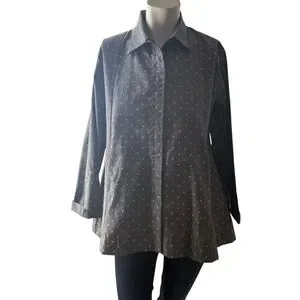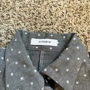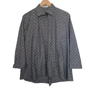 VITAMIN Star Printed Snap Button Closure Gray White Collared Blouse Womens Small