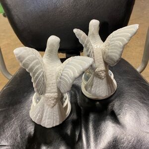 Two doves porcelain white nice set of birds :) 9” tall tip of wing and bottom about 4” wide nice Set of Doves :)