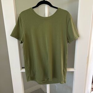 LULULEMON ATHLETICA Back in Action Tee in Olive Green with cute open- back detail and light-weight, soft athletic material. Size 8. In great condition.
