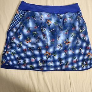 These Lands' End skorts feature a chic skort in a vibrant blue white floral botanical check pattern color scheme, perfect for resort wear. The mini length adds a playful touch, making them ideal for casual outings. Enjoy the comfort and style of these versatile skorts on your next vacation. Has pockets. in Excellent pre-loved condition. SZ 10