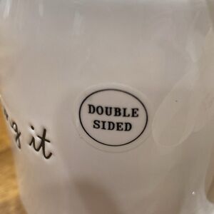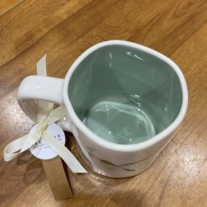 NWT. Rae Dunn, 24 oz., hummingbird, ceramic mug. This mug is large and ever so pretty! Cream colored mug with a pretty little hummingbird and one side and the words, “wing it” on the other. Hummingbird is soft green and blue colors. Interior of mug is a beautiful soft green color too. Makes a beautiful gift!Dishwasher safe. NOT recommended for the microwave. New, with tag. Stored in smoke-free home.