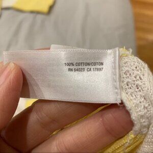 Pre-owned and still in fair shape, except the yellow and white strip shirt has a rip on the label area. Please check photo. All of them are made with 100% cotton and all of them are see through. You must wear a tank top or a camisole underneath these shirts. You get all 4 on this listing.