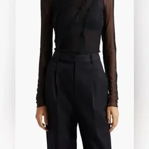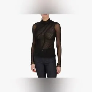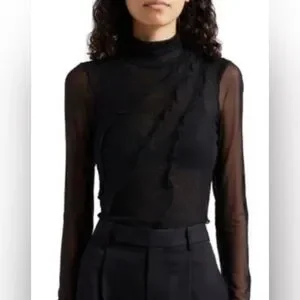 Cinq a Sept Black Mesh Turtleneck Top