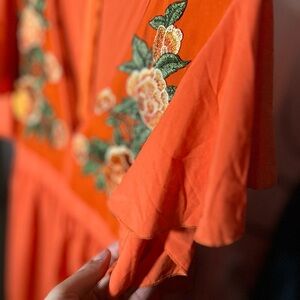 Zaful Floor Length Orange Gown w/Floral Embroidered Appliqués, Sheer Bust Sz L