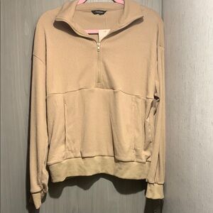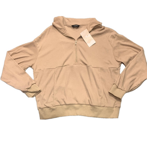 NWT Kangaroo Pocket Tan Quarter-Zip Pullover Medium