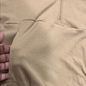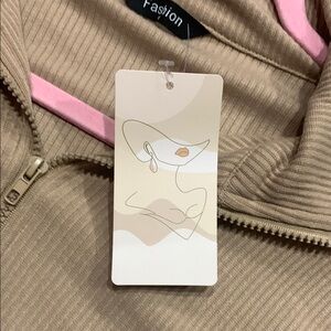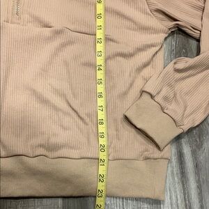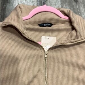 Stylish tan quarter-zip pullover. Perfect for casual wear.