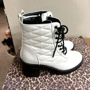 Step out in style with these chic white lace-up boots. Perfect for any occasion, these boots offer both comfort and fashion.