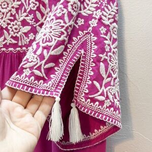 Savanna Jane Floral Embroidered Tassel Top Boho Blouse Size 1X. Excellent condition-like new, no issues to note. Great boho, beachy, summer, vacation vibes! 100% Rayon. Non smoking home.