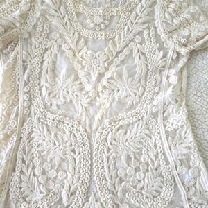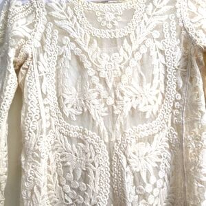 Feminine women's top in a beautiful cream lace design. Perfect for adding a touch of sophistication to any outfit.