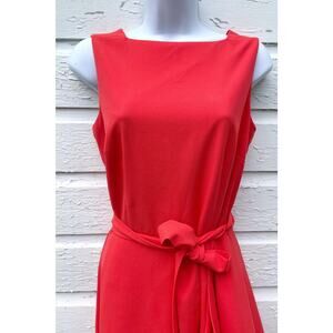 Alex Marie Dress Womens 2 Coral Orange Asymmetrical Sleeveless Tie Waist Knee