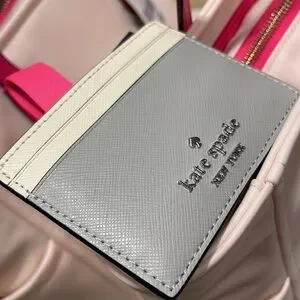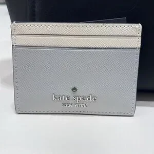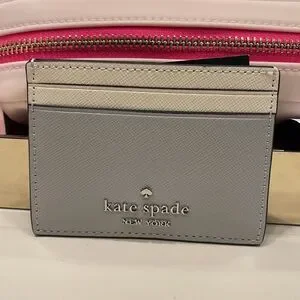 Kate Spade Madison Small Slim Card Holder Platinum Grey Multi NWT