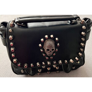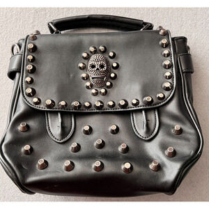 Maomaobag Black Skull Theme Studded Purse Handbag Goth Punk Biker Faux Leather