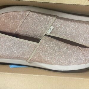 Step out in style with TOMS Women's Glitter Slip-On Shoes. These pink shoes add a touch of sparkle to any outfit. Perfect for casual outings.