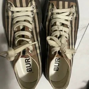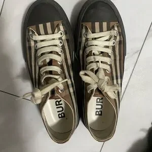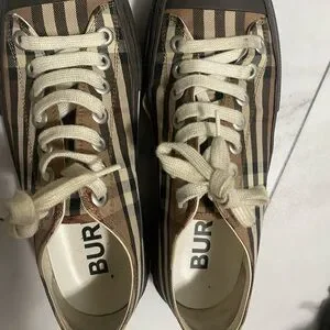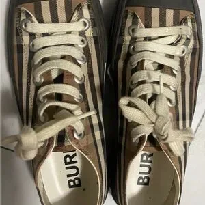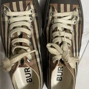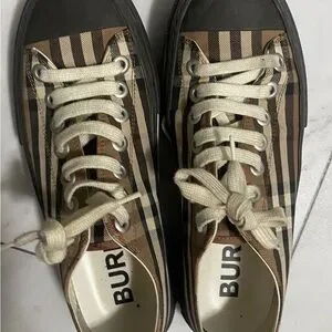 Step out in style with these Burberry men's sneakers. Featuring a classic plaid design in black and brown, these shoes offer both comfort and elegance. Perfect for any casual outing.