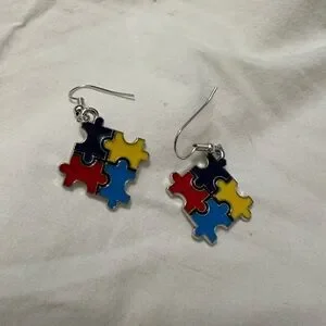 Colorful Puzzle Piece Earrings - Autism Awareness Puzzle Piece