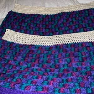 Handmade Crochet Purple, Green & Cream Retro Throw Blanket