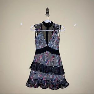 Self-Portrait Floral Vine Overlay Layered Ruffle Dress Worn by Hillary Dress