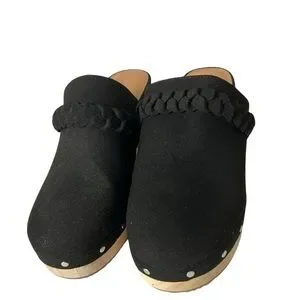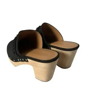 J Crew Women’s Wooden heels Clog Black Faux Suede Studded Size 6.5.