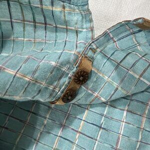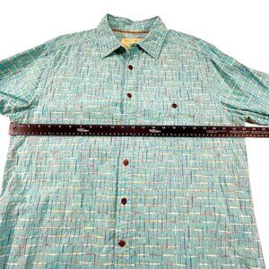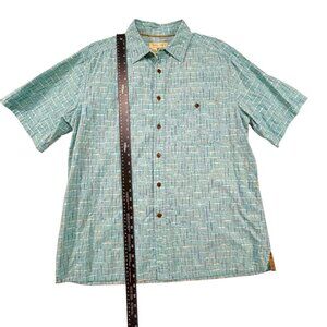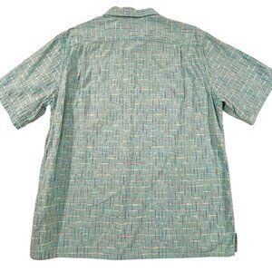 Territory Ahead Sz L Teal Green Geometric Print Short Sleeve Button Front Shirt