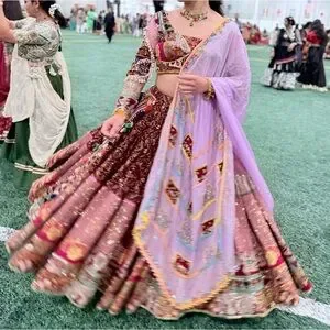 Annu Patel Navratri Pink and Red Lehenga with Intricate Embroidery for Garba