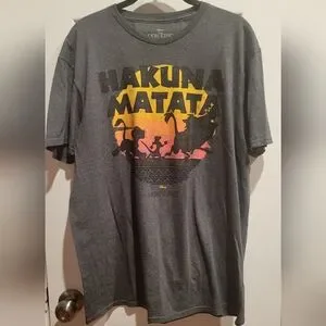 New condition, Embrace the carefree spirit with this Disney The Lion King gray t-shirt. Featuring a vibrant Hakuna Matata design, it's perfect for fans of the classic movie.