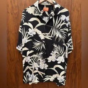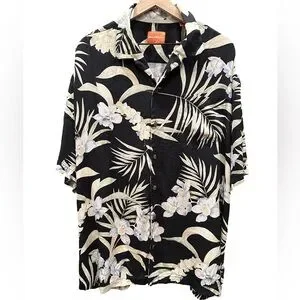 TOMMY BAHAMA Mens Hawaiian Shirt 100% Silk Short Sleeve Tropical Floral Size XXL