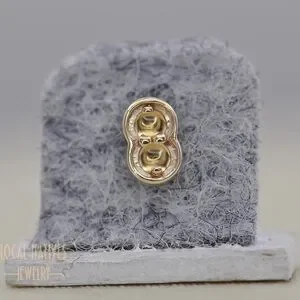 Peanut end, with yellow cab sapphires in 14k yellow gold. Press fit style, will be sterilized before being shipped. Tagged bvla for visibility but is not bvla
