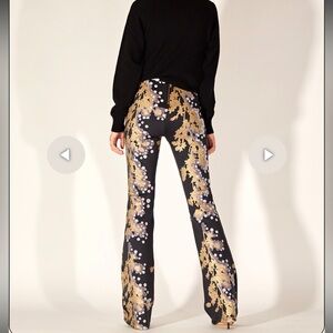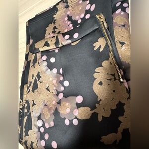Check out this magnificent pair of pants by Cynthia Rowley! They are perfect for any occasion and can be dressed up/down as needed. They feature copper tone branch/leaf accents with pink-ish dots.