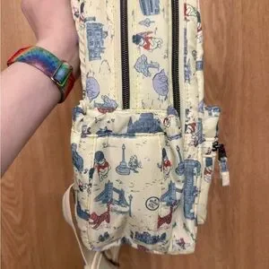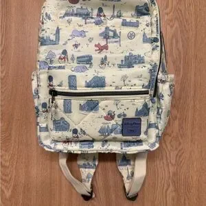 This bag is brand new without tags! Straight from Walt Disney World comes this Charming Disney Loungefly backpack with a cream and blue design Winnie the Pooh and friends in jolly London print. Features playful Disney-themed illustrations, multiple pockets for great storage, and durable but super light weight construction. I ship quickly and with care from a smoke free home :)