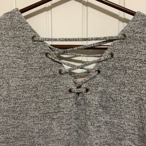 MAURICES WOMENS SHORT SLEEVE PATCHWORK TOP SHEAR FRONT CRISS CROSS BACK