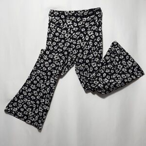 Planet Gold Women's Flared Pants Black White Floral Size Small ~ Excellent