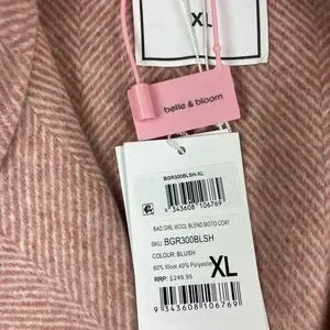 Bella & Bloom NWT Bad Girl Wool Blend Moto Coat Pink Size XL