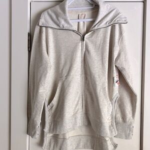 Free People Movement Zip Up Knit Jacket NWT Size L In Oat Milk Boho Chic