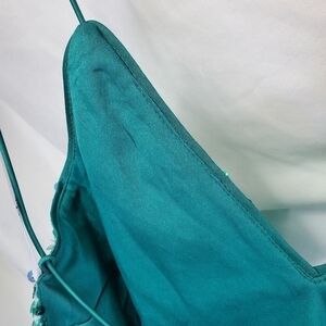 Take the party by storm in the Lulus Force of Fashion Turquoise Backless Sequin Mini Dress! Mesh overlay, decorated with shimmering silver and blue sequins, falls from rounded, elastic straps, into a darted, triangle bodice. Strappy, open back tops a figure-skimming mini skirt.